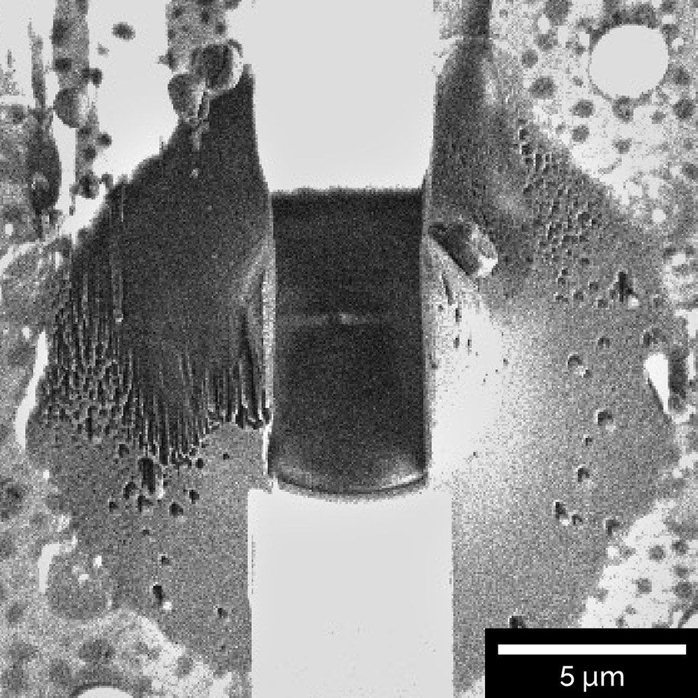 Amber Cryo is a FIB system dedicated to preparation of frozen, thin lamella samples from biological specimens for high-resolution tomographic imaging in a cryo-transmission electron microscope (cryo-TEM).