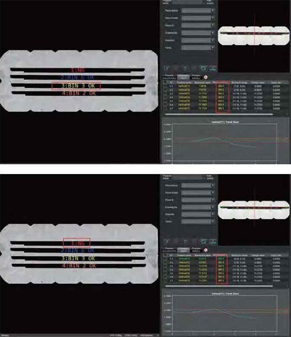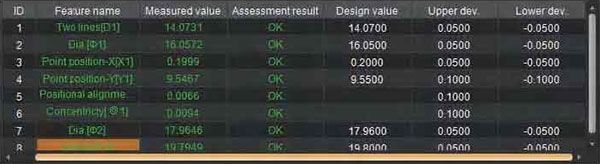 Permite modificar los programas CNC en cualquier momento, así como añadir o eliminar características. El resultado OK o NG se determina automáticamente según las tolerancias establecidas en el programa.