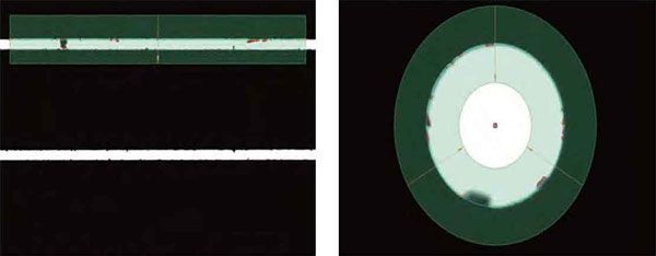 El sistema identifica automáticamente los bordes tras seleccionar la región de interés. Se pueden configurar condiciones para eliminar interferencias y extraer con precisión características, incluso en contornos muy pequeños.