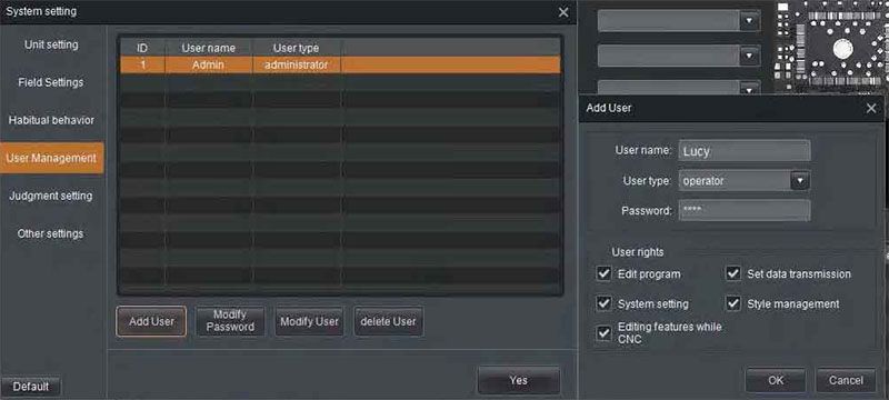 Las cuentas pueden configurarse como administrador u operador. Los permisos de los operadores pueden restringirse según las necesidades del proceso.